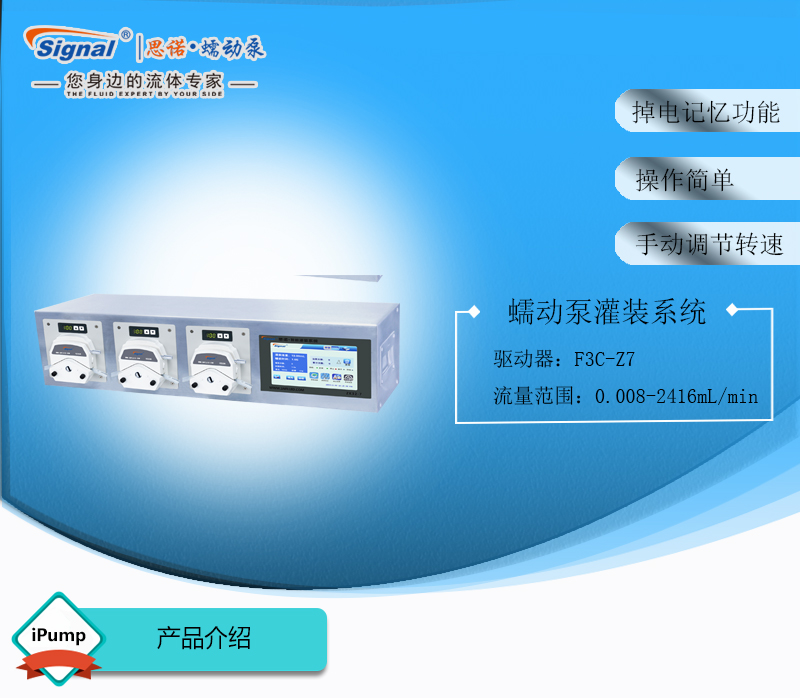 此灌裝系統(tǒng)由3通道組成,通道數(shù)量可定制,大可擴(kuò)展至32通道;可安裝YZ15、YZ25泵頭;