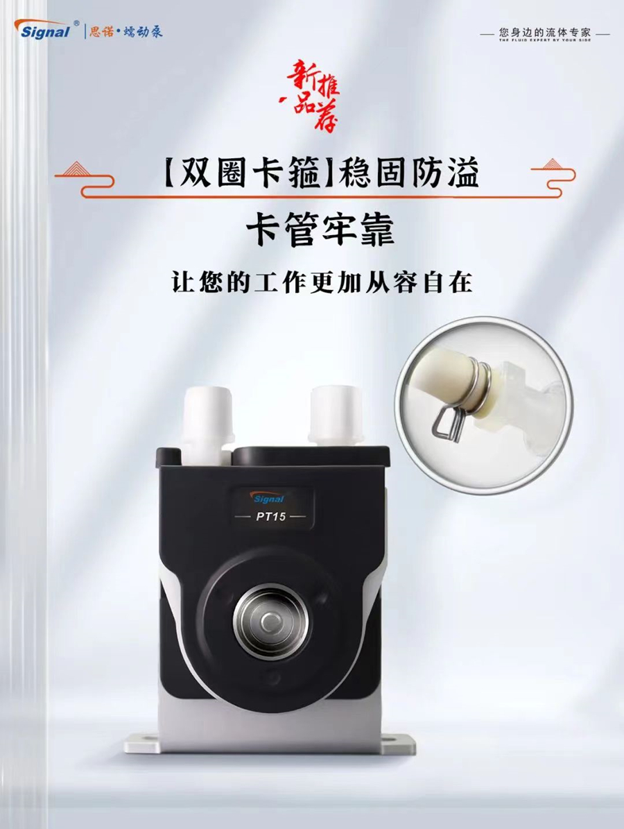 蠕動(dòng)泵G-2J+PT15具備雙圈卡箍,這種設(shè)計(jì)能夠更牢固地卡住軟管,可以有效的避免漏液,軟管的安全性得到了充分保障。