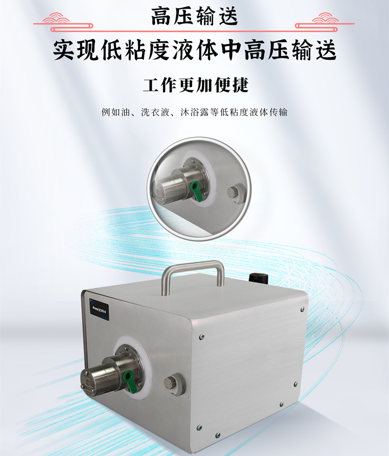 2、可以實現低粘度液體中高壓輸送: