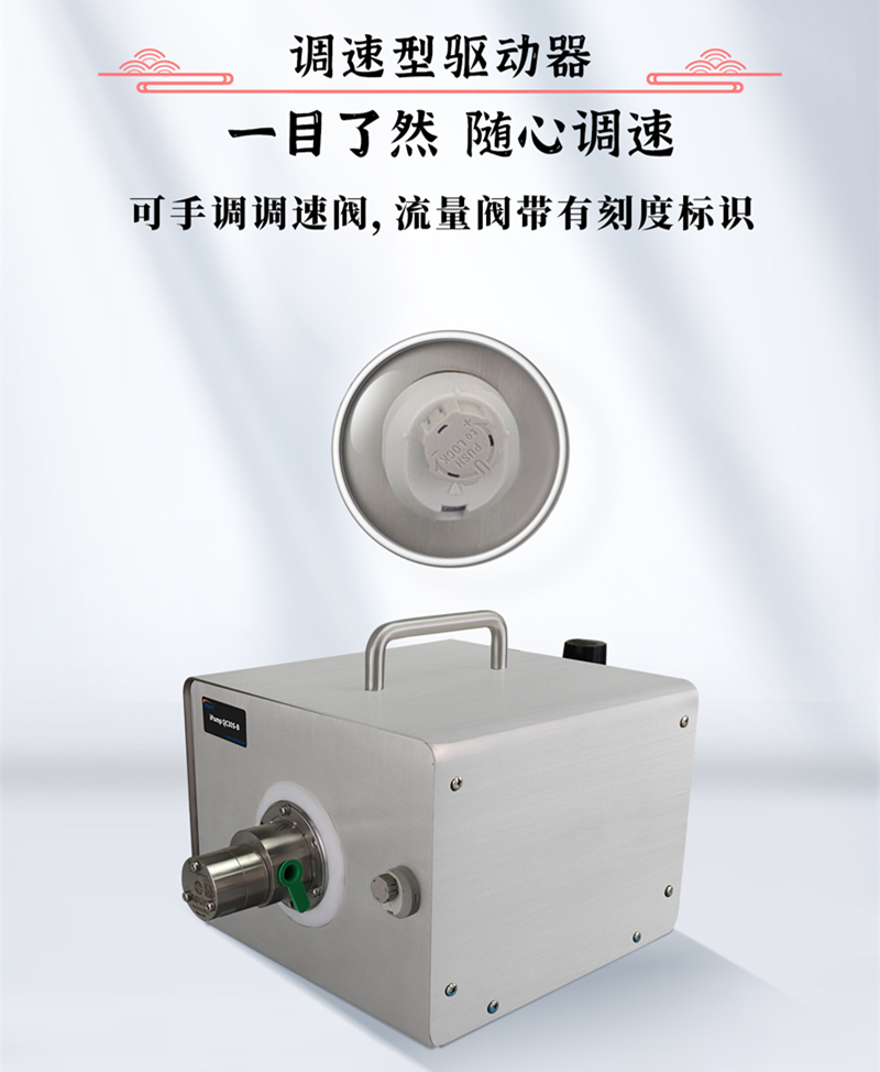 此外,防爆氣動齒輪泵搭配調速型驅動器,用戶可以手動調節調速閥,這些閥門都帶有刻度標識。這讓用戶能夠方便地調節蠕動泵的工作速度和流量,以滿足不同應用需求。