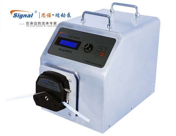 超聲波清洗消毒機(jī)工作時,需要自動定量添加和注入酶、清洗劑和消毒液。添加的清洗助劑具有用量小、添加精度高、有一定腐蝕性等特點(diǎn),是普通泵所不能很好滿足的。思諾生產(chǎn)的一款精密蠕動泵作為一種步進(jìn)電機(jī)蠕動泵,具有輸送精度高、耐腐蝕、截止閥等特殊性能,能夠很好地滿足超聲波清洗消毒機(jī)中添加清洗添加劑的特點(diǎn)和需求。