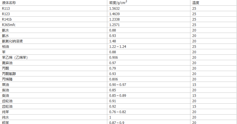 常見液體密度 蠕動泵在進行流體灌裝的時候會涉及到很多因素,比較重要的就是流體的密度,密度的不同影響到..